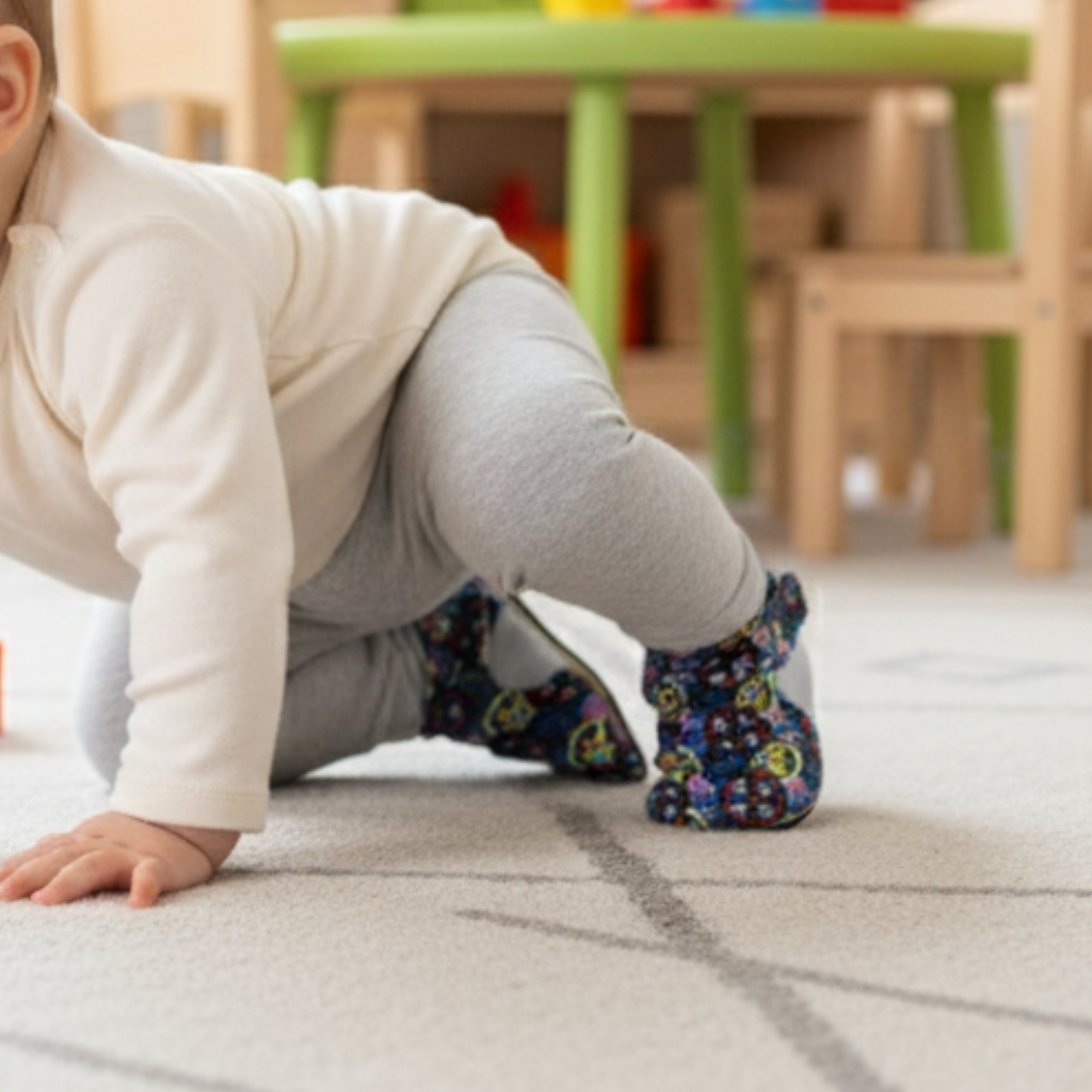 Son ideales en la etapa del gateo y primeros pasos cuando quieras proteger los pies de rozaduras y golpes, o quieras calzarlos para salir a la calle.