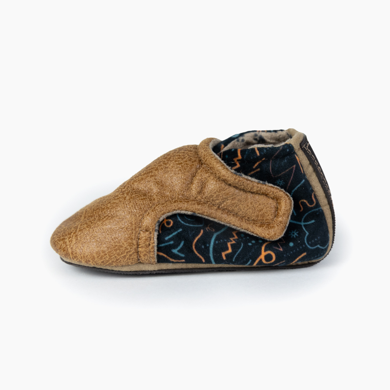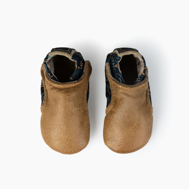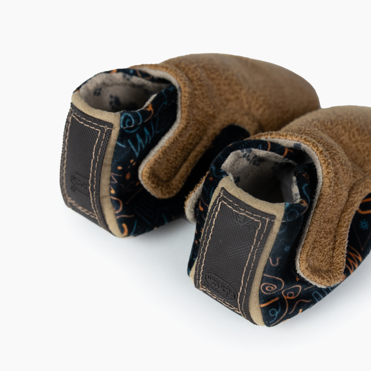 Color marrón y dibujos de colores. Suela negra Vibram